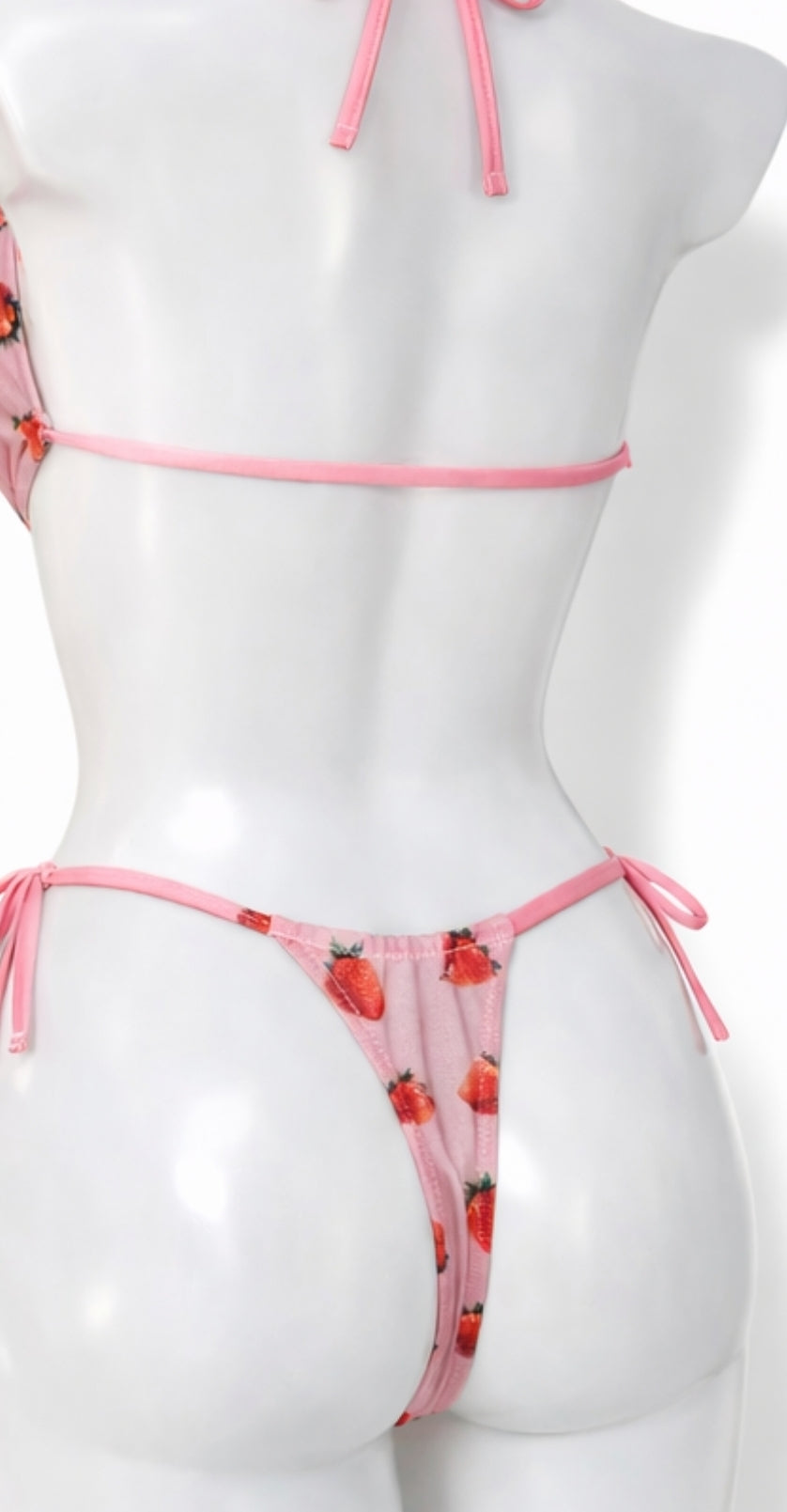 Sweet, playful, and totally irresistible — this pink lingerie set covered in a cute strawberry print is made to make you feel fun and flirty. The triangle top and matching thong are designed to flatter your shape while keeping things light and comfortable.
